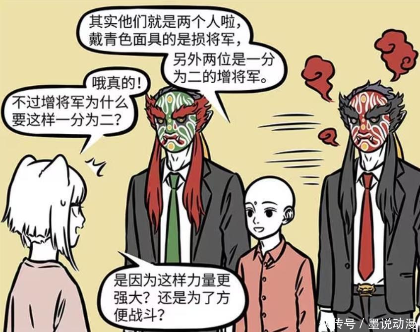 另外官将首本就是恶鬼模样,一旦解开面具,那是一般恶灵都得吓死。损将军嫉恶如仇,对待恶鬼那是绝不手软。增将军更是特殊,平时会一分为二,不过在《非人哉》里面,他这么做也是为了打羽毛球。